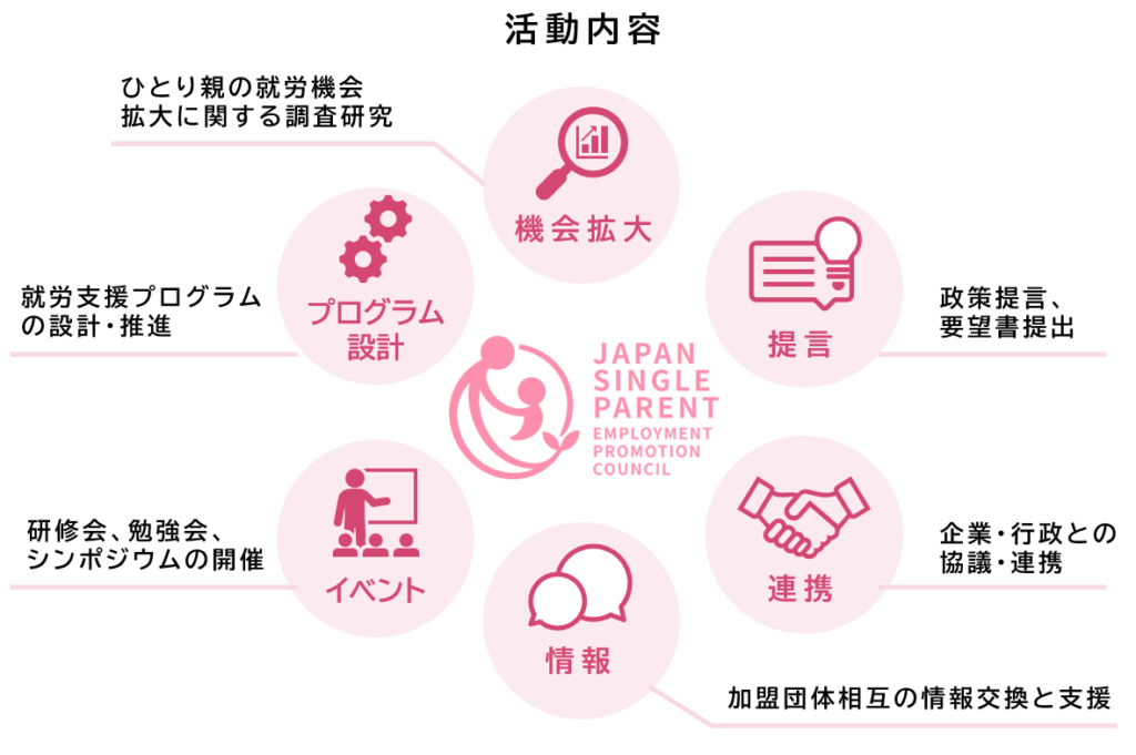 同協議会は、ひとり親家庭の就労促進・自立支援を目的に、行政・民間双方と連携しながら社会課題の解決と制度提言を行う団体です。