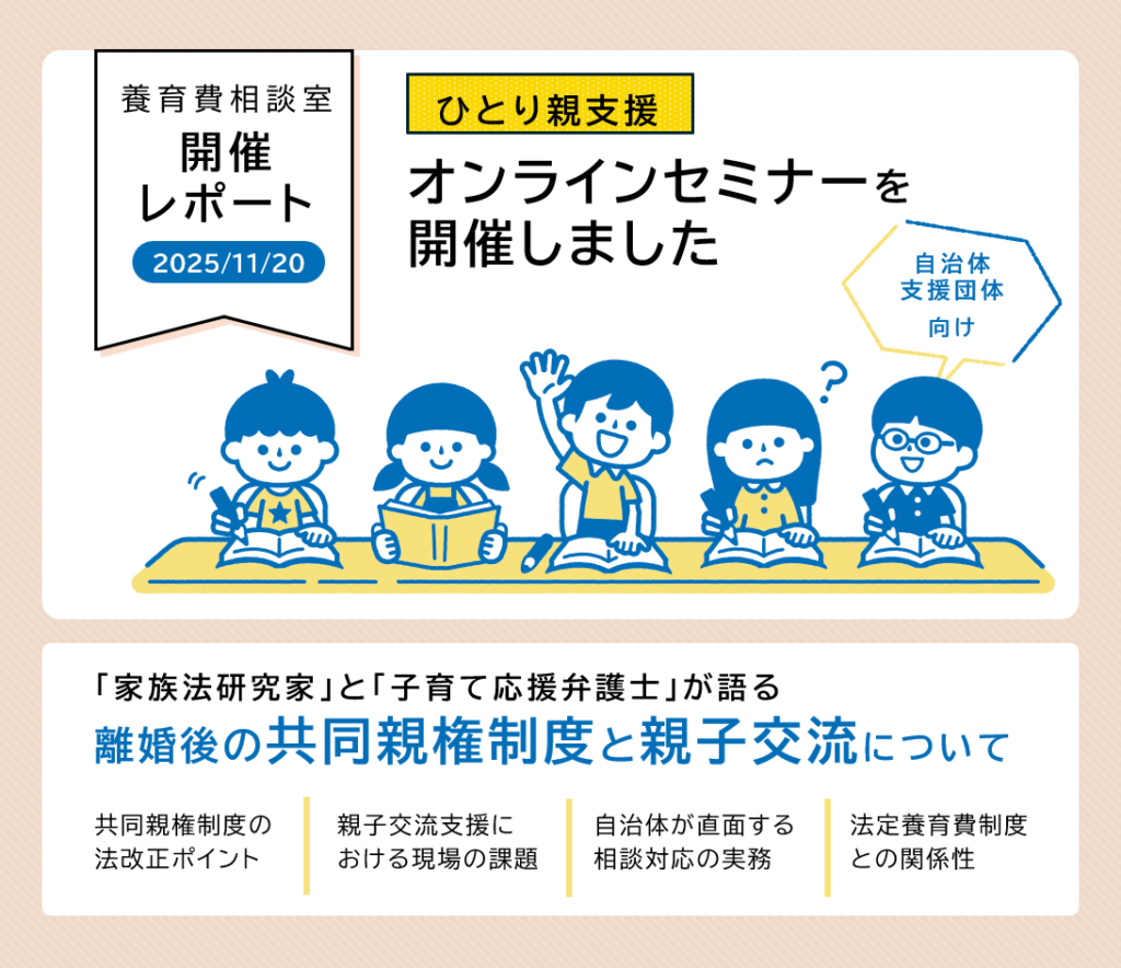 今後も自治体や支援機関と連携しながら、ひとり親家庭の生活安定と子どもの最善の利益の実現に向けた取り組みを強化してまいります。