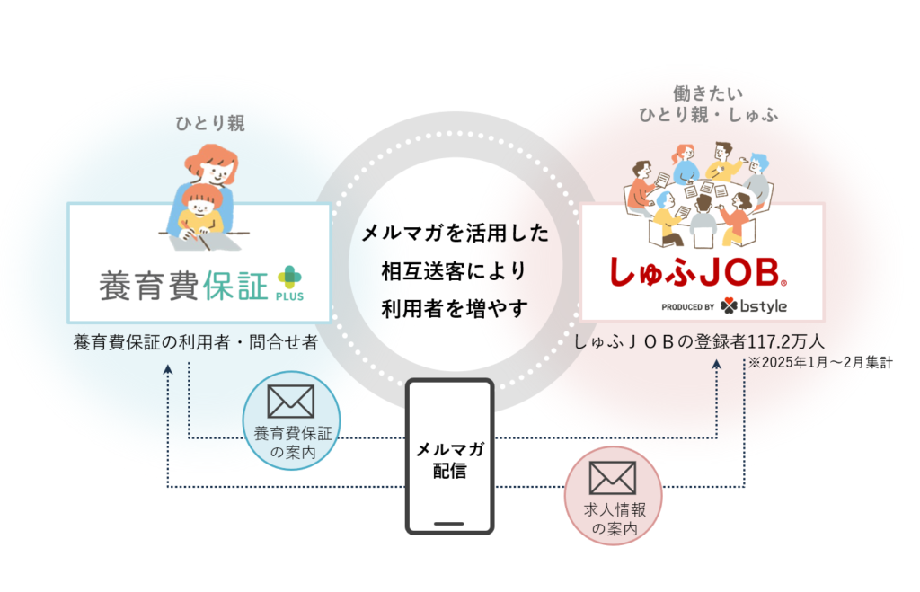 ビースタイルメディアが運営する「しゅふJOB」の豊富な人材ネットワークと、Casaの養育費保証サービスを融合させることで、両サービスの利用者拡大を図ります。