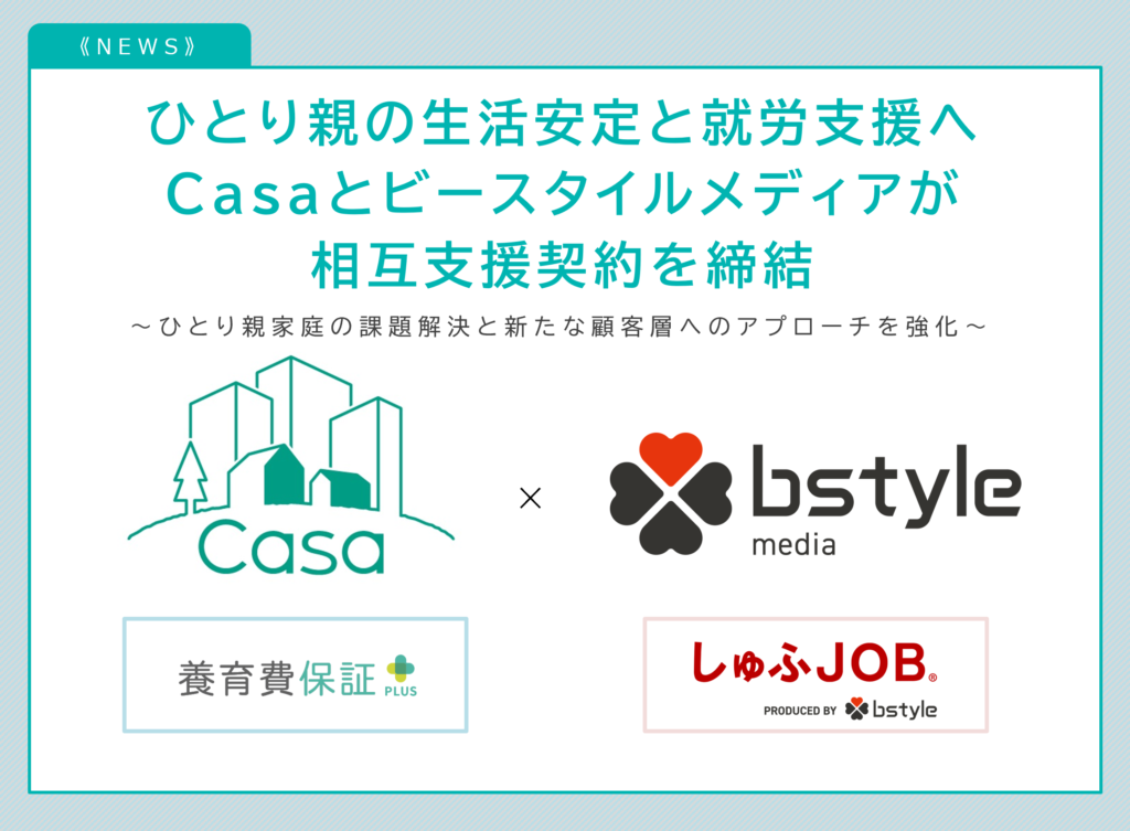 【ひとり親の生活安定と就労支援へ】Casaとビースタイルメディアが相互支援契約を締結